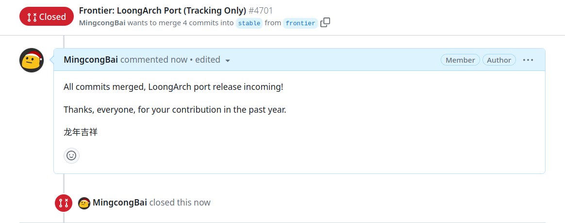龙年第一天,历时逾半年的龙架构移植已完成合并,正式“合龙”!